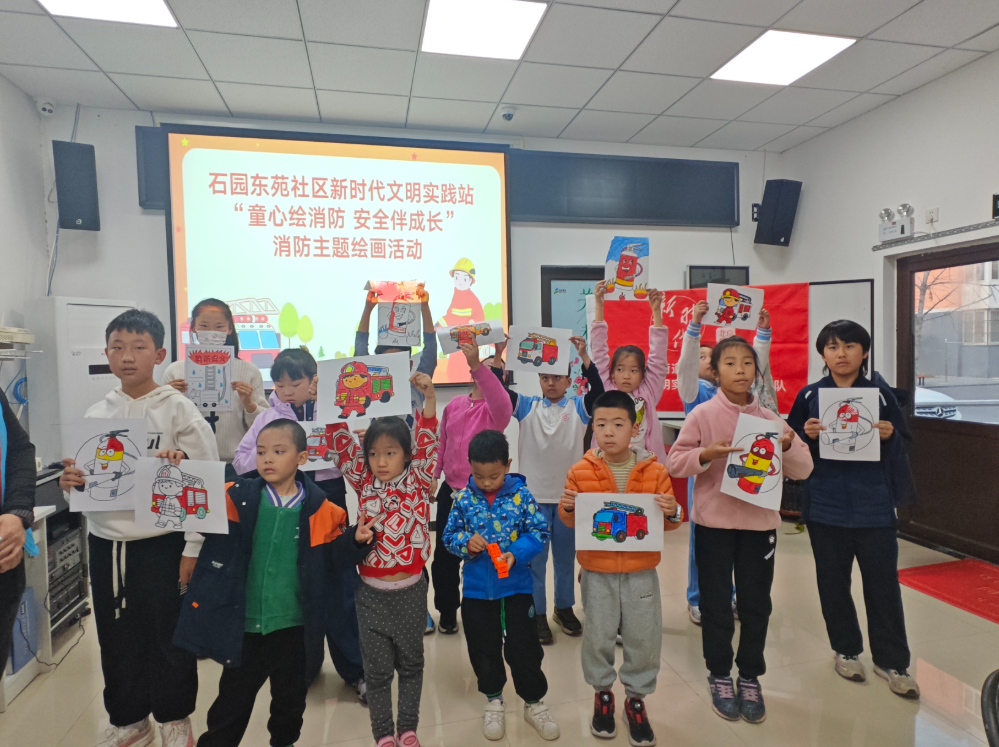 石园街道石园东苑社区新时代文明实践站开展“童心绘消防 安全伴成长”消防主题绘画活动