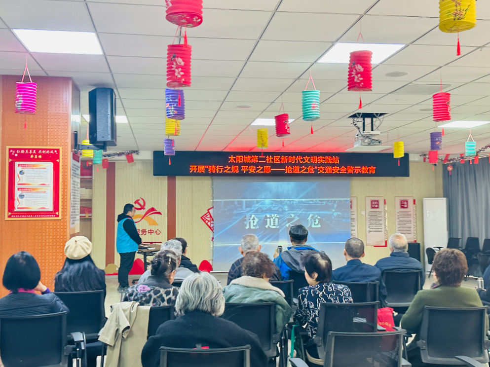 为切实提升社区居民的骑行交通安全意识,有效防范和减少因骑行抢道引发的道路交通事故,营造安全、有序、文明的出行环境,近日,太阳城第二社区新时代文明实践站开展了交通安全警示教育宣传活动,30余名社区居民参加。[查看详细]