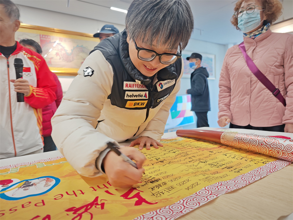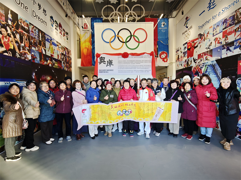 活动中,奥运火炬互动环节瞬间点燃全场热情。参与者在刘超英老师的带领下,亲手触摸奥运火炬,感受奥林匹克精神的力量,并在“点燃激情 传递梦想”奥运火炬大长卷上郑重签名,以实际行动传递体育精神与文明实践的温度。随后,刘超英老师结合明悦港奥库体育收藏馆的珍贵藏品,生动解读了全运会精神的时代价值,强调体育不仅是竞技拼搏的舞台,更是凝聚社区力量、丰富群众生活的重要载体。吉祥花园社区党支部书记史胜楠现场发出倡议,号召居民以此次活动为契机,主动参与体育锻炼,培养健康生活方式,在运动中收获快乐、凝聚邻里温情。