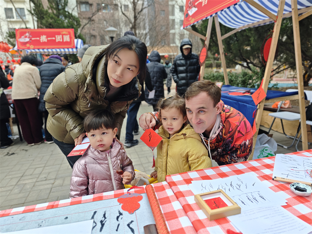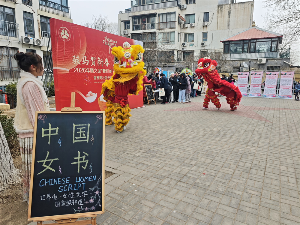 活动现场喜气融融,热闹的非遗舞狮拉开序幕,锣鼓声声传递新春祝福。非遗女书书写、手工摇元宵、传统投壶、趣味猜灯谜四大体验区同步开放。居民们提笔书写女书书签,亲手摇出软糯元宵,在投壶中祈福纳祥,于灯谜间感受传统智慧,乐趣满满。