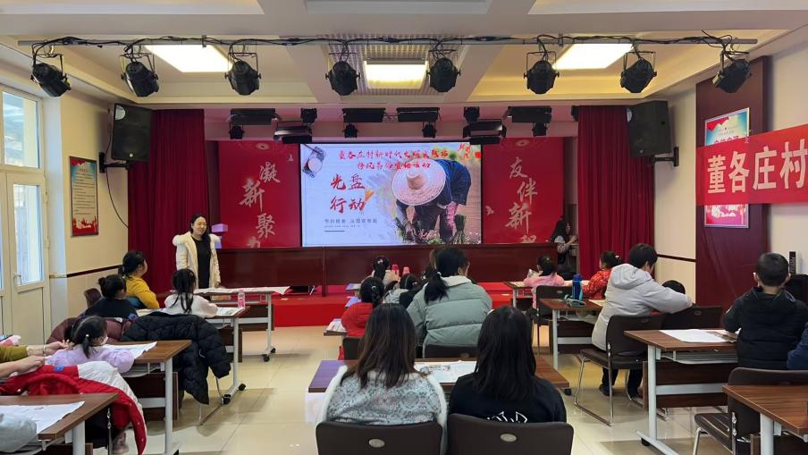 在董各庄村实践站,宣讲人以生动的案例和详实的数据,深入浅出地为村民讲解粮食浪费的现状以及节约粮食的重要性。为了强化村民们参与“光盘行动”的行为意识,宣讲中还播放了一段“光盘行动”主题宣传视频。视频中,各行各业的人们都在用自己的实际行动践行“光盘行动”,从家庭聚餐到单位食堂,从城市到乡村,大家都在为节约粮食贡献自己的力量。
