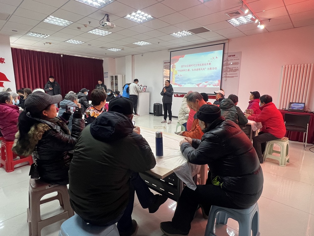 为进一步发挥榜样引领作用,培育和践行社会主义核心价值观,营造崇德向善的浓厚氛围,2月21日,蓝天社区新时代文明实践站开展了“传递榜样力量 弘扬道德风尚”主题活动,共15位社区居民参加。