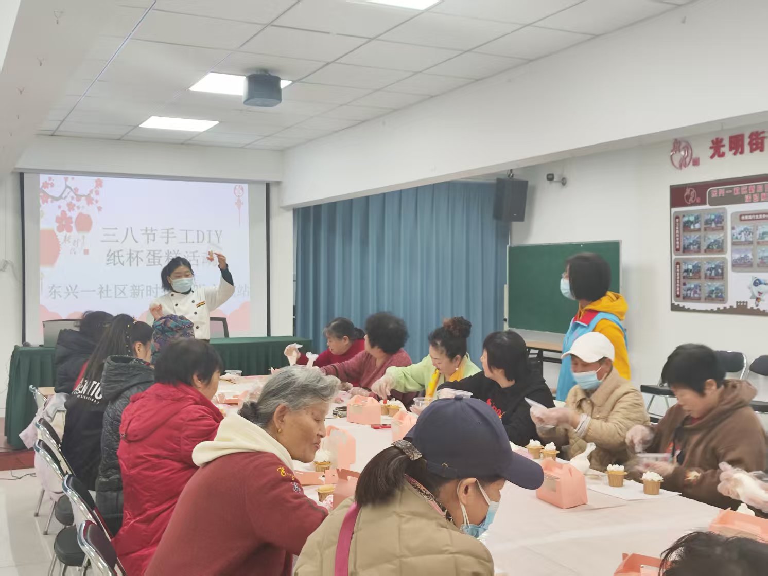光明街道东兴一区新时代文明实践站开展“三八节”纸杯蛋糕手工制作活动