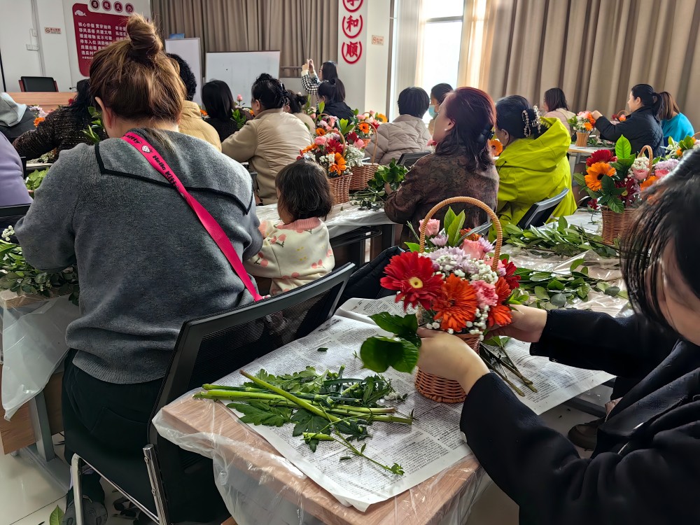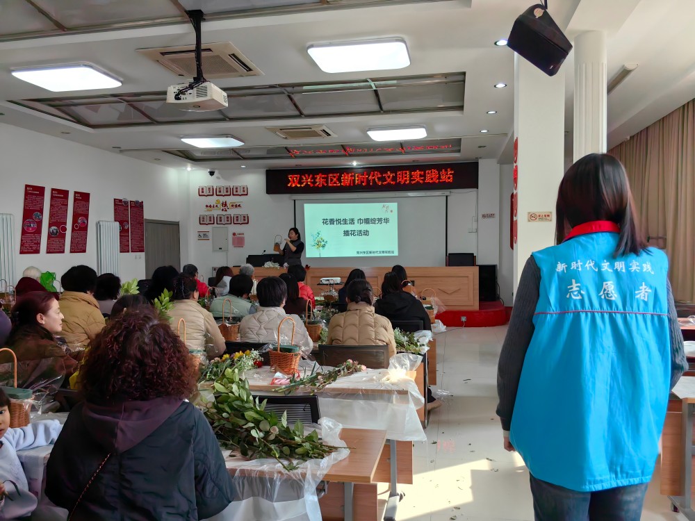 双兴东区新时代文明实践站开展“花香悦生活 巾帼绽芳华”插花活动