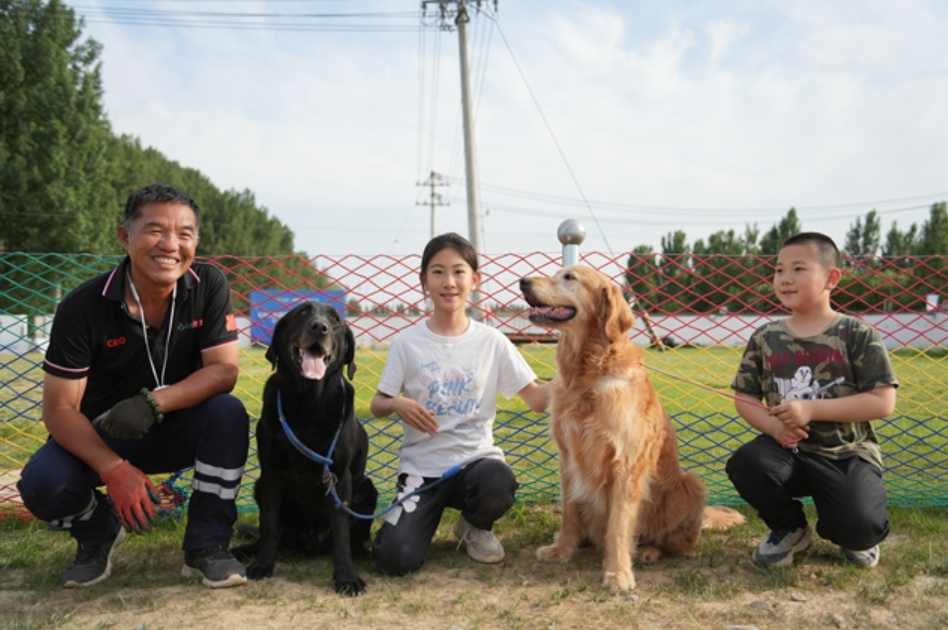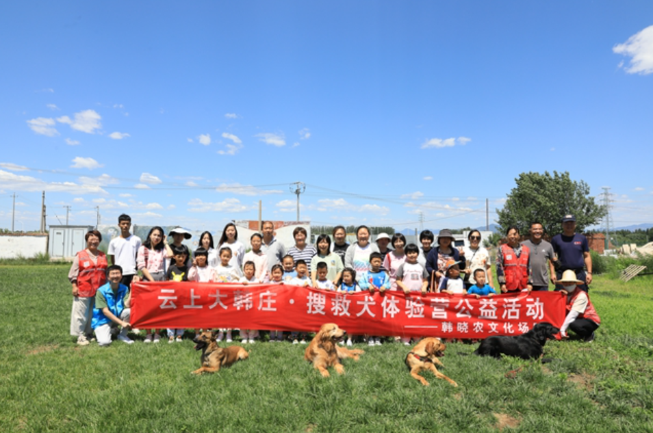 钟鸣(二排右二)在搜救犬基地开展夏令营活动