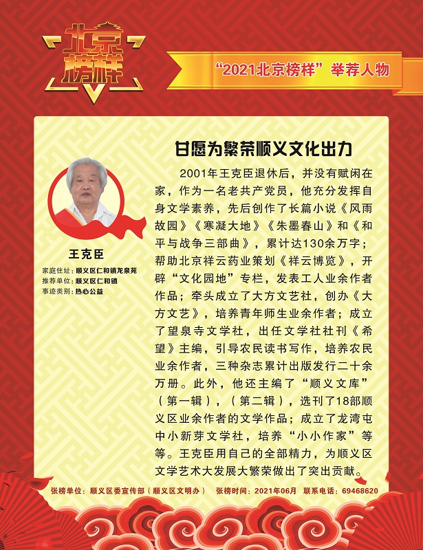 "2021年北京榜样"6月举荐人物--王克臣