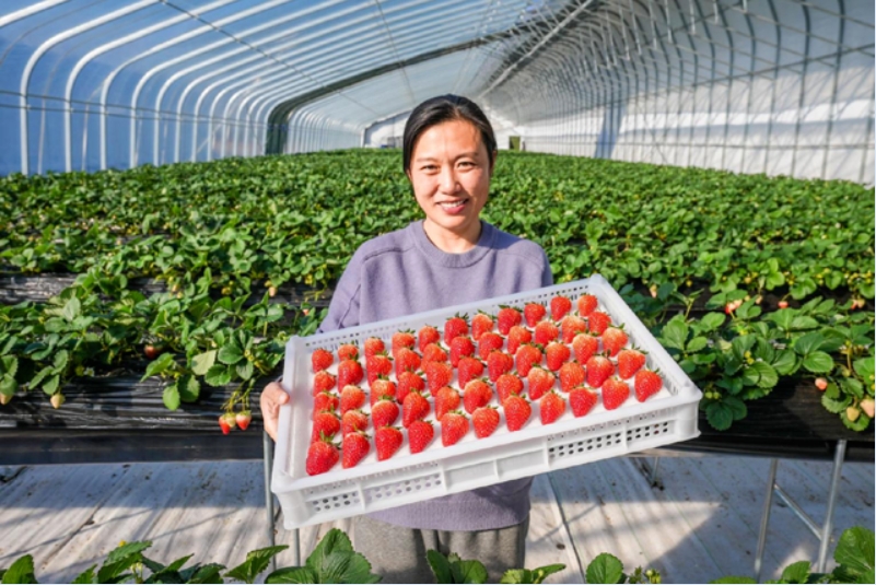 探索就此开始,改变就此产生。王颖并没有着急扩大草莓种植的规模,而是继续利用读博期间所学到的方法理论,不断优化草莓种植方法,提升果品质量,通过设计对比试验,主动试错,不断摸索无土栽培的理论及应用。她还虚心向其他种植户请教草莓日常管理技巧,在试错和失败中不断总结经验、获得成长,这让她在两三年的时间里迅速提高了草莓无土栽培种植技术,产量品质稳定提升。随后,她又亲赴日本参观学习草莓基质培育模式、水肥调控等先进的种植技术,不断提升自己,让种出来的草莓口感更佳,甜度和香度更高。