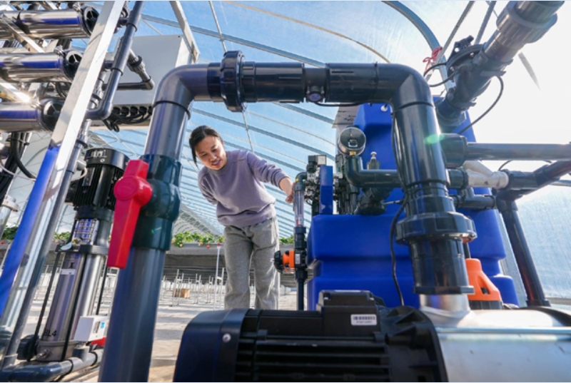 王颖查看辅助草莓生长的智能化设备