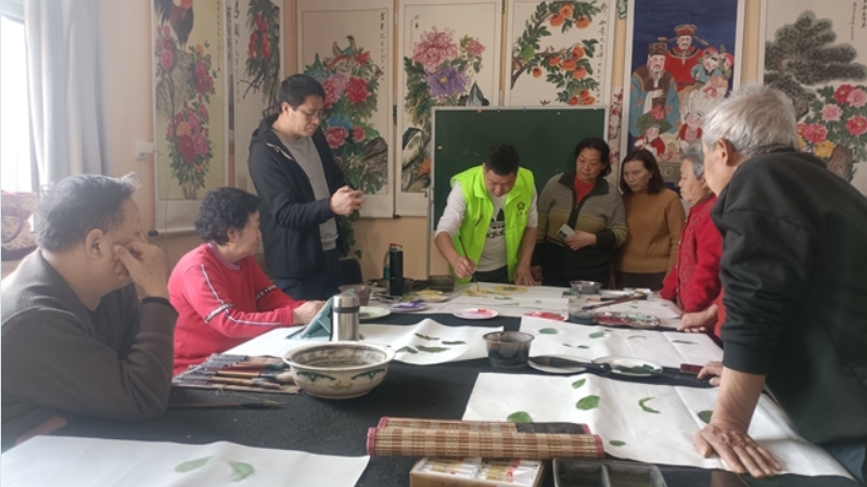 2019年,北石槽镇下西市村养老驿站想要开设老年书画班,专门教授老年人书画,刘军主动报名,成为了驿站的一名义务教师,帮助老年人实现他们的绘画梦。此后每周一的上午,刘军都会到下西市村驿站为老年人上义务教授国画课。几节课下来后,他发现教孩子画画和教老年人画画是不一样的,方法上需要进行一些调整,经过一段时间的摸索,刘军和这个书画班“大学生”们很快融合到了一起。刘军说,“我虽然是‘80’后,但他们对老师的那种尊敬之情,让我觉得更有义务教好他们绘画,让他们能够老有所学,实现自己的绘画梦想”。