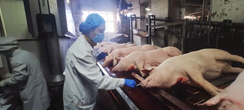 赵希桐在屠宰场一线采集数据