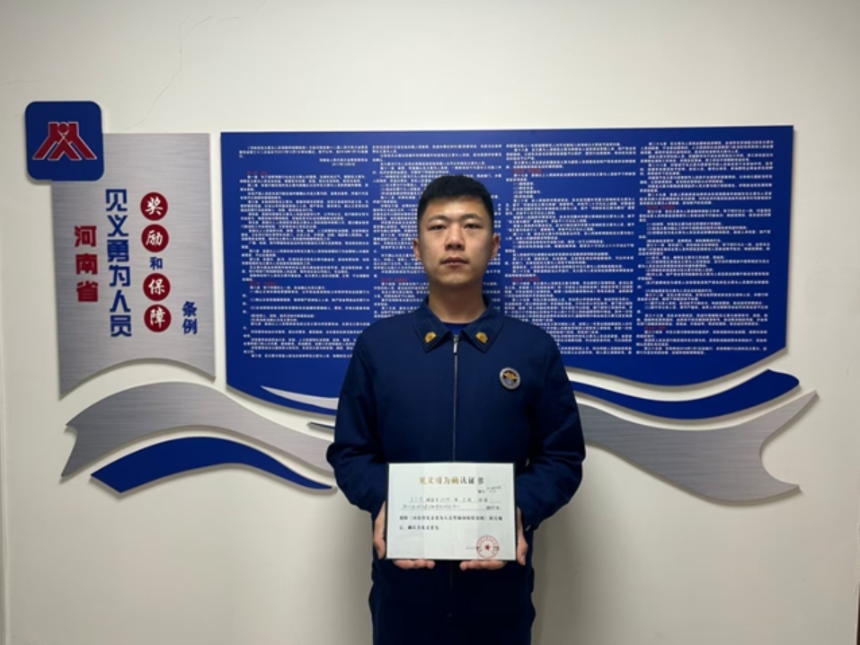王广洋获得见义勇为证书