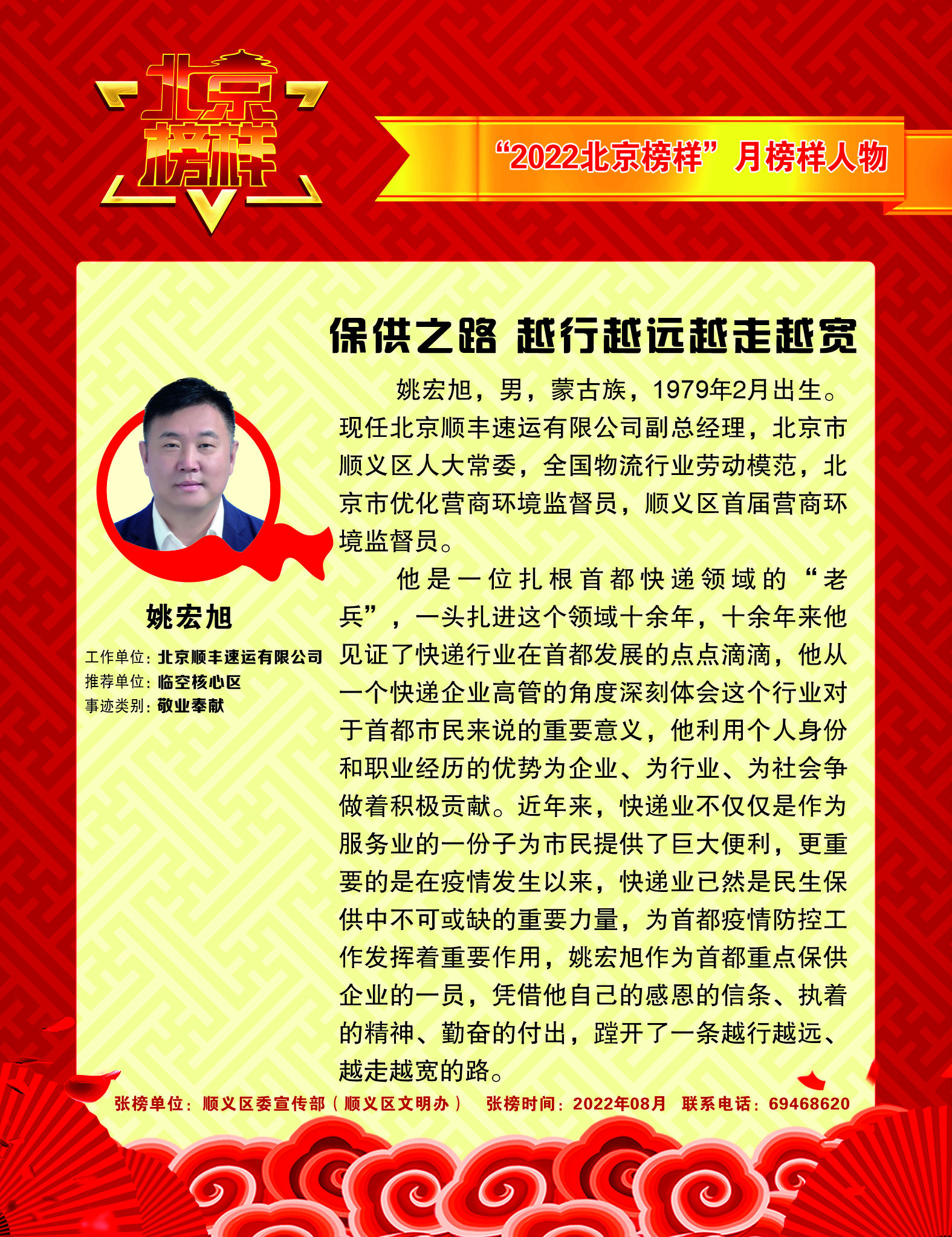 "2022年北京榜样"8月举荐人物--姚宏旭