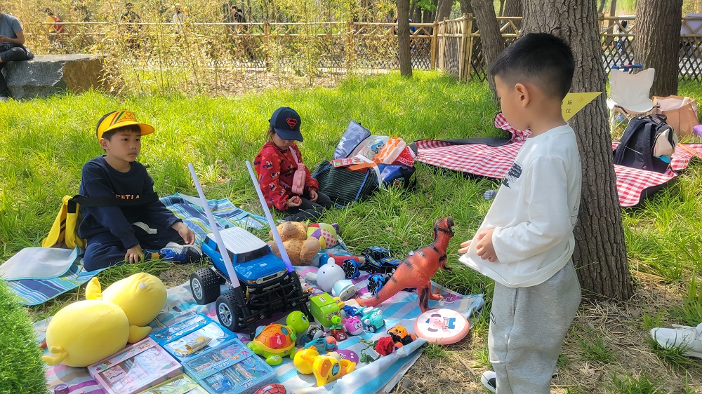 活动现场人声鼎沸,热闹非凡。“小老板”和“顾客”的欢笑声、叫卖声和讨价声此起彼伏,汇成了欢乐的集市交响曲。小顾客们游走在各个摊位之间,认真的挑选自己喜欢的商品,每位“小顾客”的到来,都令“小老板”们开心不已,“小顾客们”有模有样的讨价还价,在这个过程中,孩子们不仅认识了钱币,还学会了一些购物技巧。“这个怎么卖?”“这个小汽车卖吗?”“能便宜一些吗?”......丰富的话语,让孩子的语言能力得到了提升。“小老板”们凭借着自己优秀的销售能力,成功交易,并在交易和交换的过程中,体验到了分享的快乐。