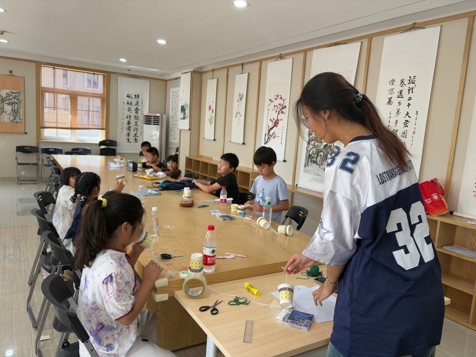 牛栏山镇文化活动中心新时代文明实践基地开展“纸杯传声筒 巧手连童趣”手作活动