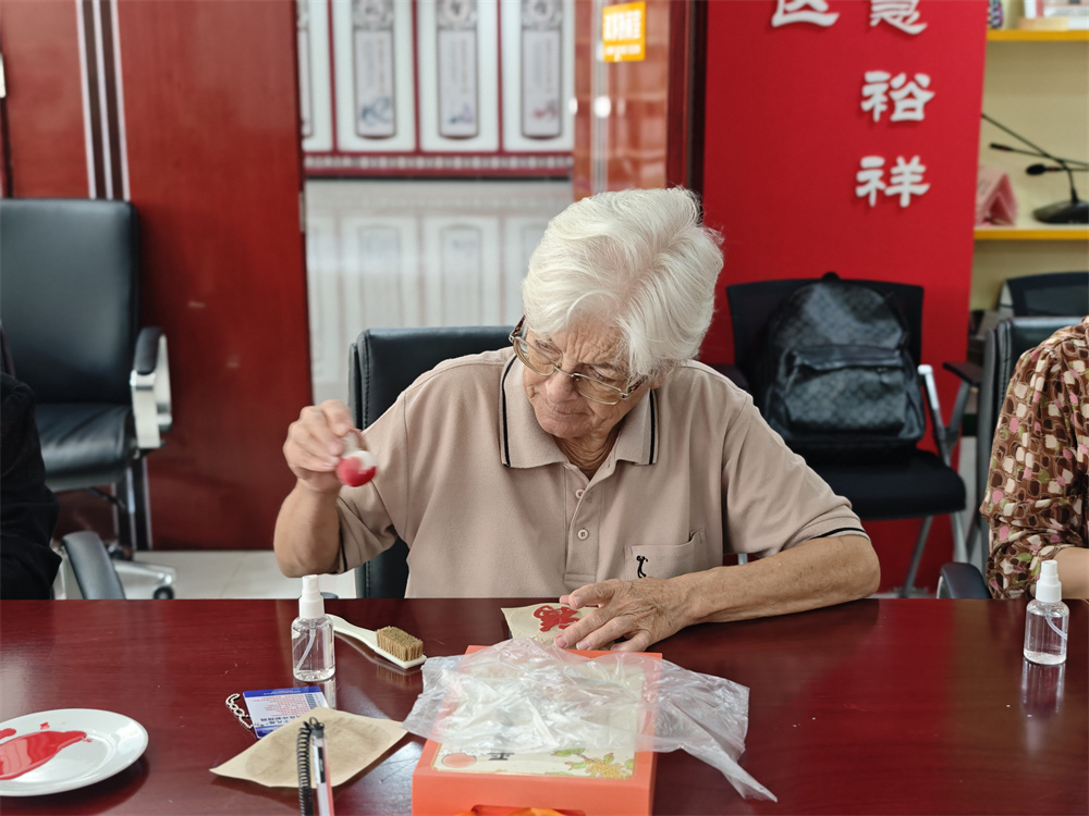 随后,在瓦当拓印环节,非遗老师为居民们介绍拓印技艺的历史文化,并指导大家亲手创作属于自己的瓦当“福”字拓印,在墨香与纸韵中传递出“平安、吉祥、团圆”的美好节日祝愿。