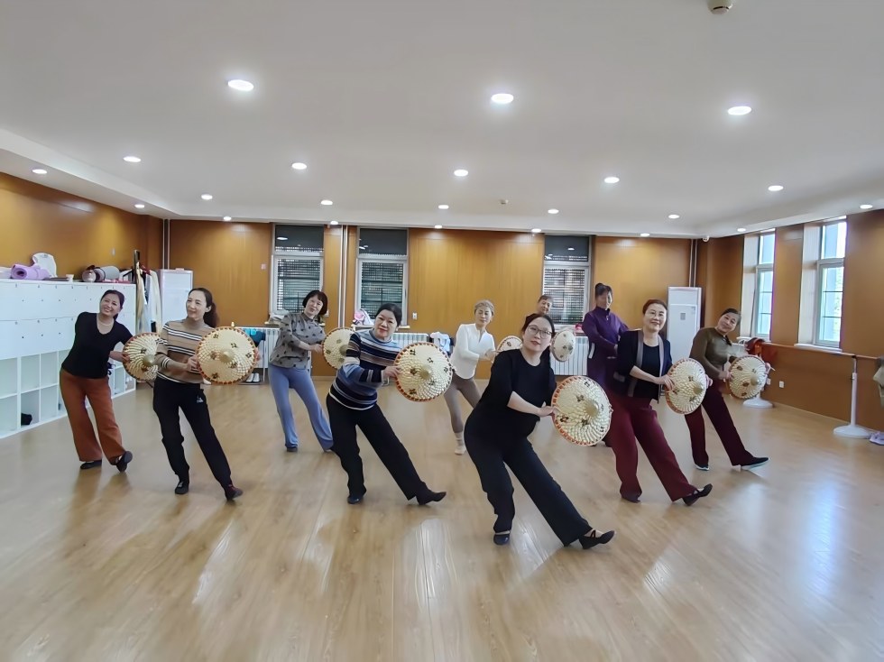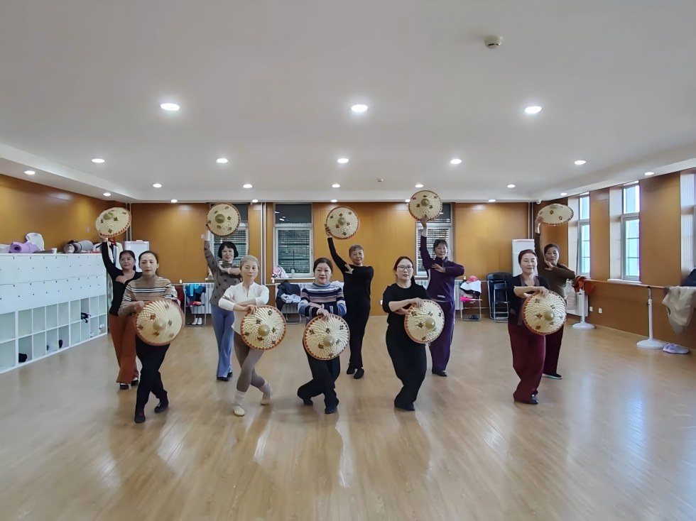 “草帽舞以草帽为舞蹈道具,既能展现传统舞蹈的乡土韵味,又蕴含着舞蹈的热情活力。”活动中,老师为大家介绍草帽舞的特点,并选取节奏舒缓、动作柔和的舞蹈编排,带大家从单人动作到集体配合,逐步教授草帽舞技巧,感受草帽舞带来的独特韵味和美感。