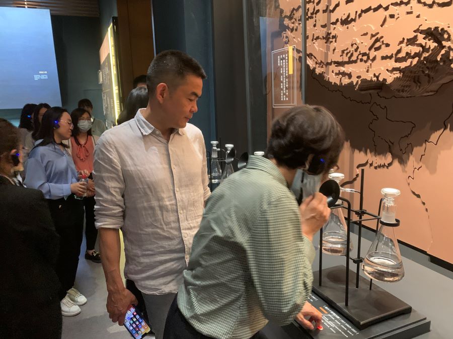大家在讲解员的带领下走进文化苑参观游览,在十二大香型闻香装置面前,感受到了我国十二大香型白酒的独特魅力。同时,通过品读二锅头的发展史,体会到了二锅头与京味儿文化之间血脉相承的联系。