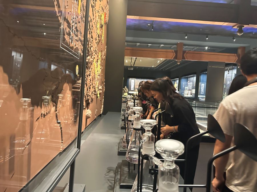 在讲解员的带领下,同学们走进北京牛栏山二锅头文化苑进行参观体验。文化苑是一座集科教实践、旅游观光、文化传播于一体的博物馆,展馆内设置了丰富的互动区域,有“闻香识味”“投壶”“沉浸式体验厅”等区域,使同学们感受到酒文化的独特魅力的同时,对中国白酒酿造行业也有了新的认知。