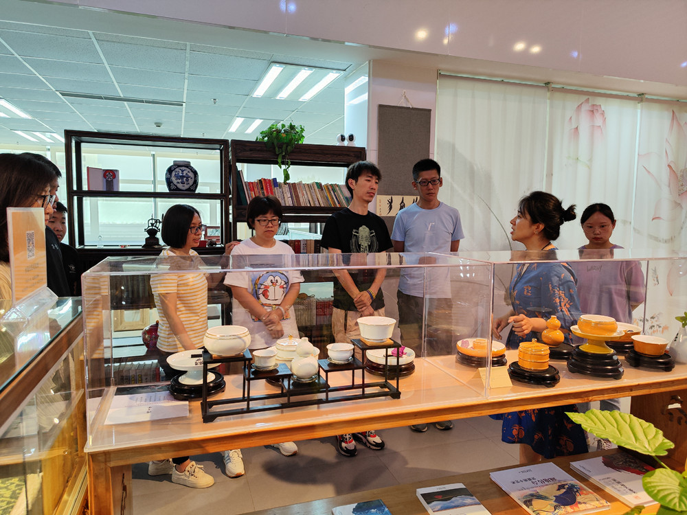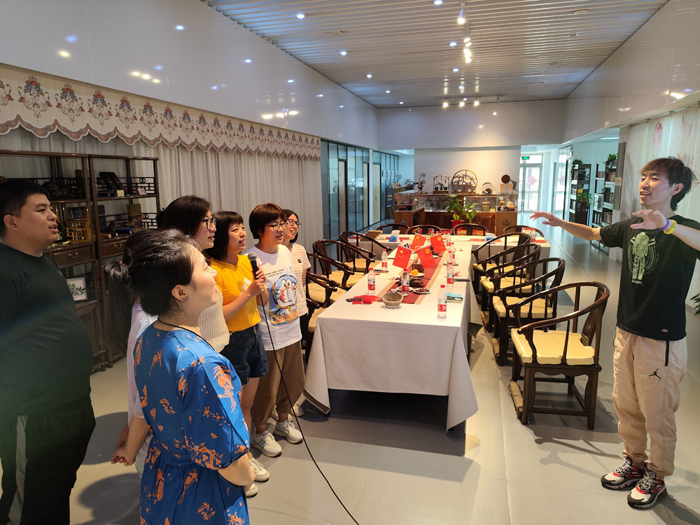 在明悦港文化空间内,基地负责人介绍了壤巴拉非遗文化产品发起人的初衷及非遗文化传承的内容。居民们静下来感受千年非遗魅力,顿时心中升起智慧的力量。