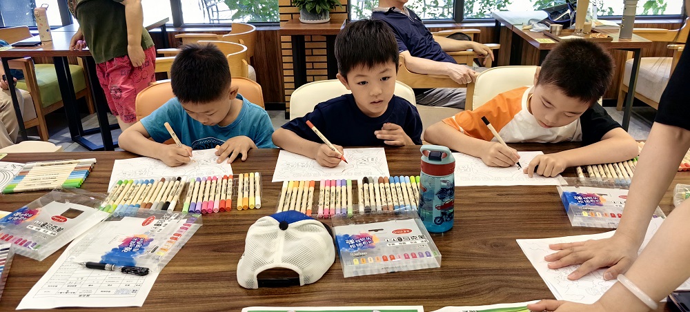 随后,小郁老师为大家发放了图画和马克笔。孩子们拿起手中的画笔,发挥想象,用稚嫩的线条与奇妙的色彩搭配,把对“护苗”行动的理解和认识通过一幅幅白纸生动表达。这些童画主题突出,童趣十足,形象地展示了“护苗”意义,让绿色绘画行动深深扎根在了孩子们的心灵之中。