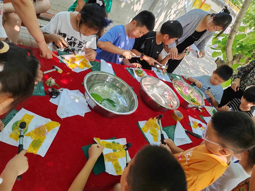 杰微小院新时代文明实践基地开展“追寻夏日”植物拓印活动