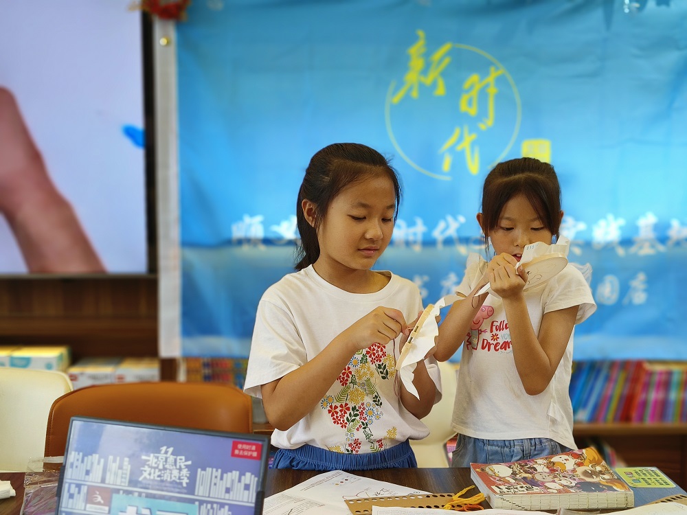 顺义新华书店温榆河田园店新时代文明实践基地开展传统文化亲子课堂《二十四节气立秋》手工刺绣活动