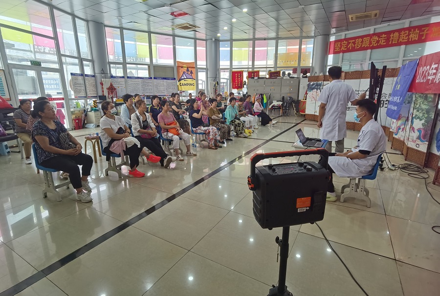 京顺中医堂专业讲师采用PPT生动形象地为大家讲解了中医养生、秋季食谱、秋季养生办法、穴位按摩、推拿小技巧等健康知识。同时,为有颈椎病、腰肌劳损的群众现场示范按摩,缓解疼痛。此次活动得到大家的一致好评。