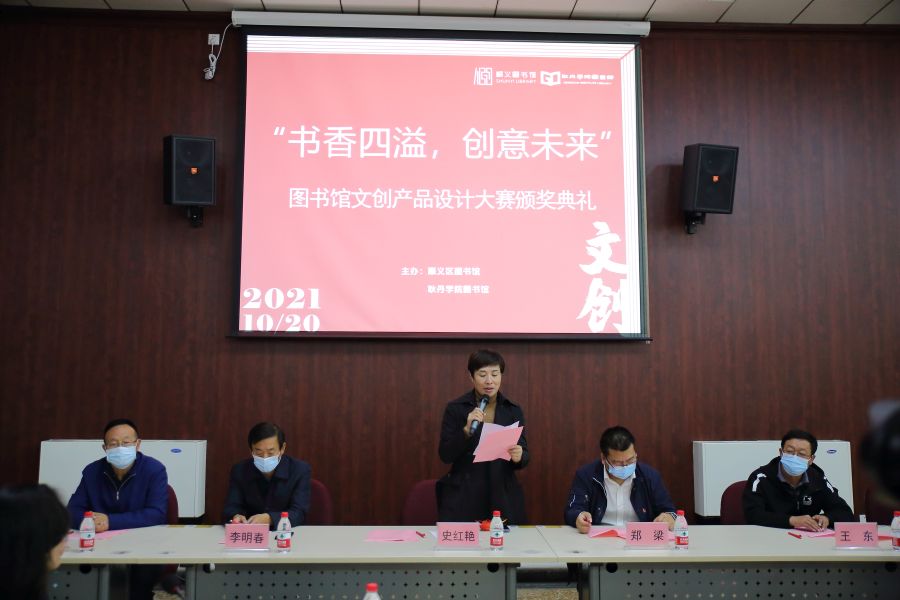 顺义区图书馆史红艳馆长、耿丹工学院解萌老师先后在典礼上致辞。史红艳馆长对获奖选手表示了祝贺,对大家踊跃报名参加此次活动表示肯定。她指出,此次大赛的初衷是让社会大众参与到图书馆的发展中来,通过设计图书馆的文创产品,阐释顺义区图书馆品牌特色及服务理念,打造“书香顺义”文化氛围,这些设计作品创意十足、兼具鉴赏性及实用性,很好的诠释了顺义区图书馆的品牌特色,展现阅读文化的无穷魅力。今后顺义区图书馆将持续举办文创产品设计活动,让更多的社会公众参与进来,共同为图书馆发展添加力量,用比赛形式为学生实践搭建舞台。耿丹工学院解萌老师对获奖作品进行了点评,本次大赛的文创作品巧妙的融入了有关图书馆的各类元素和内涵精神,既具有创意性和视觉冲击力,又具有一定的实用性,体现出顺义区图书馆的品牌特色和服务理念。