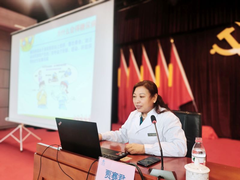 讲座现场,顺义区医院内分泌专家贾赛君主任向大家介绍重点介绍了高血糖、高血脂、高血压等慢性疾病的病因、临床症状、具体表现,以及健康的生活方式对疾病预防影响,并举例指出慢性疾病患者在日常生活中存在的不良生活习惯,引导大家树立正确的健康保健观念及预防认知。