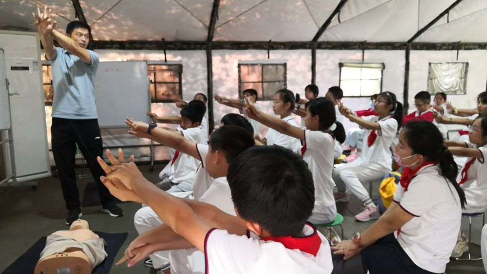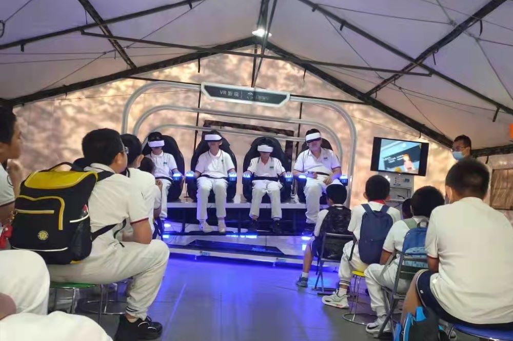 活动开始后,培训老师围绕火情发生预警、火灾应对、在火灾中自我保护、应急救护等方面内容进行讲解。随后,带领学生们在工作人员的指导下分批体验了VR沉浸火情模拟,让孩子们感受到了火灾消防场景,并通过组织火情应对知识问答互动,进一步巩固了孩子们的防灾减灾相关技能。