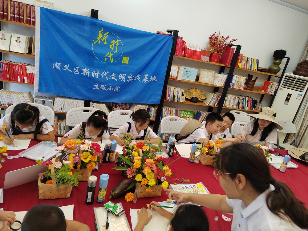 杰微小院新时代文明实践基地开展“多彩的花与画”活动