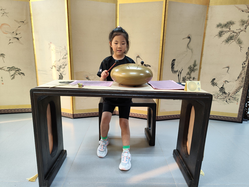 最后,基地工作人员还为大家弹奏了乐器色空,并简单介绍了一些乐器常识,照着乐谱小朋友们也学会了弹奏。