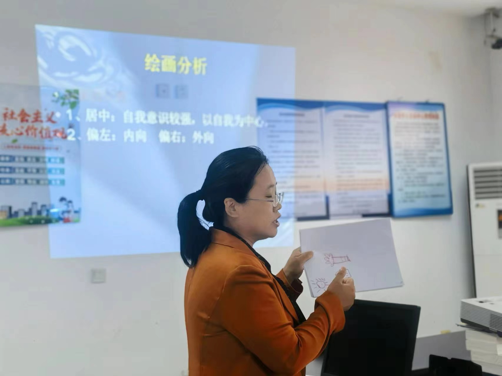 接着,杨老师通过为大家进行心理绘画测试《房树人》,帮助大家找到了各自在生活中的情绪卡点。杨老师还让大家了解到自己的原生家庭对幸福感受能力的影响,并指导大家如何为孩子创造良好的原生家庭环境,从而让孩子在一个健康的家庭环境中快乐成长。
