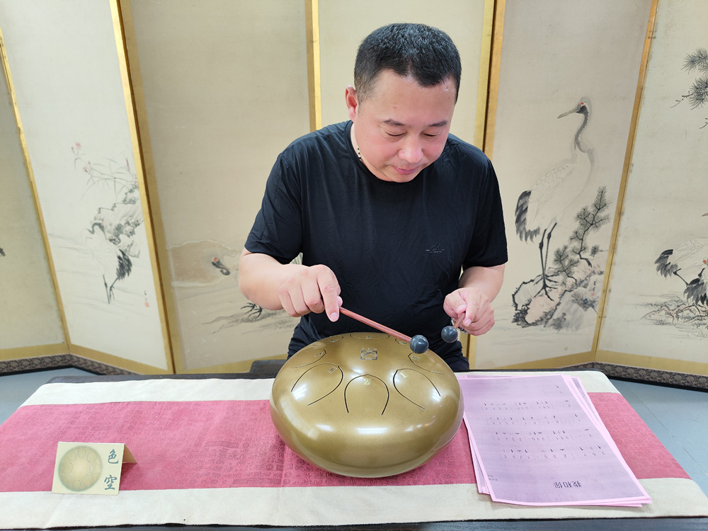 活动最后,基地工作人员为大家弹奏了乐器色空,并简单介绍了一些乐器常识,照着乐谱大家也学会了弹奏。