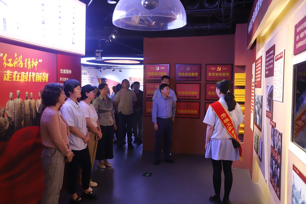 活动开始,基地负责人陪同大家参观了党群中心,同时讲解员向大家细致讲述了中国共产党从成立之初到带领中华民族走上独立自主、繁荣富强的峥嵘奋斗岁月,学习了中国共产党砥砺奋进的百年发展历程。