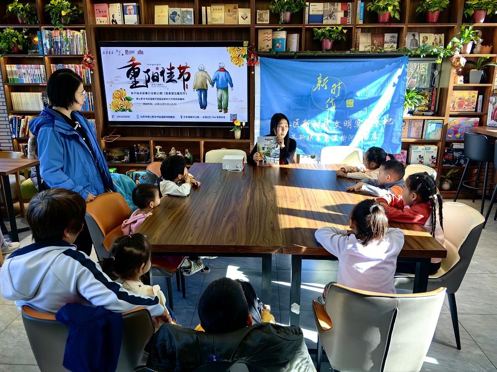 顺义区新华书店温榆河田园店新时代文明实践基地开展“爱满重阳 孝润童心”主题亲子绘本活动