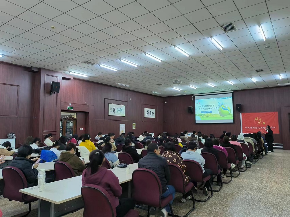此次活动特邀北京工业大学耿丹学院人文学院思政部副教授、顺义区团委挂职副书记石玲敏老师现场向大家作了《<习近平谈治国理政>第四卷系列学习——学习生态文明思想,引领美丽中国建设》主题报告。