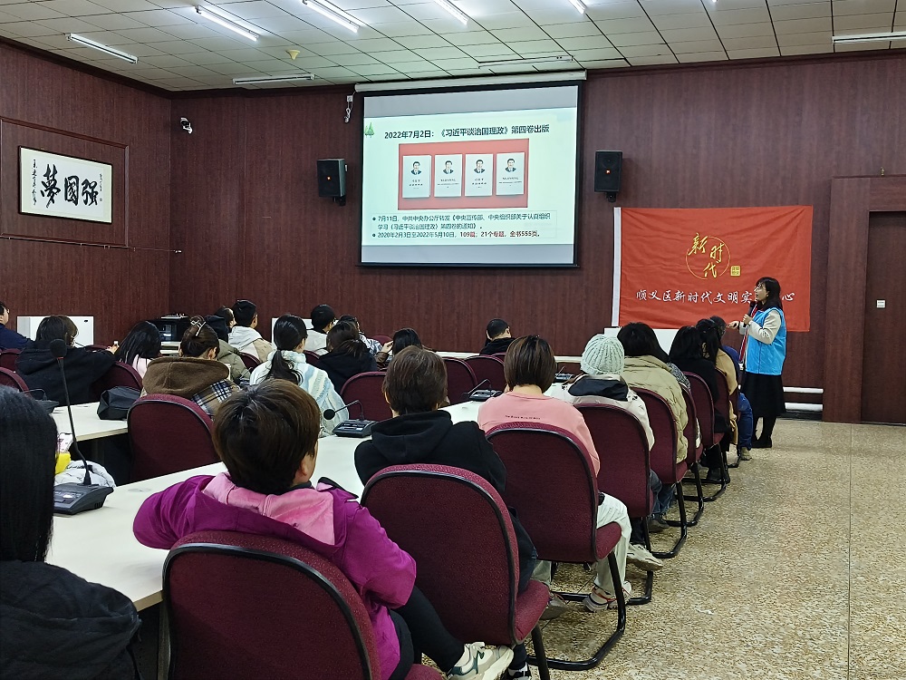 为深入贯彻习近平新时代中国特色社会主义思想,引导广大民众坚定理想信念,进一步提高思想政治素养,11月9日下午,北京工业大学耿丹学院图书馆新时代文明实践基地承办了以“习近平生态文明思想——引领‘美丽中国’建设”为主题的《习近平谈治国理政》第四卷系列学习活动。此次活动由顺义区新时代文明实践中心主办,顺义区委党校、顺义区新时代文明实践中心、牛栏山镇各村代表及校内外读者80余人参加。