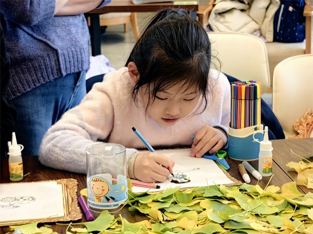 随后,小郁老师为大家讲解了树叶粘贴画的制作流程,并给大家分发了制作材料。孩子们在拿到材料包后,便迫不及待开始了自己的小创作。孩子们展开想象的翅膀,将采集来的落叶通过修剪、拼搭、粘贴,制作出了一幅幅秋意浓浓的树叶粘贴画。
