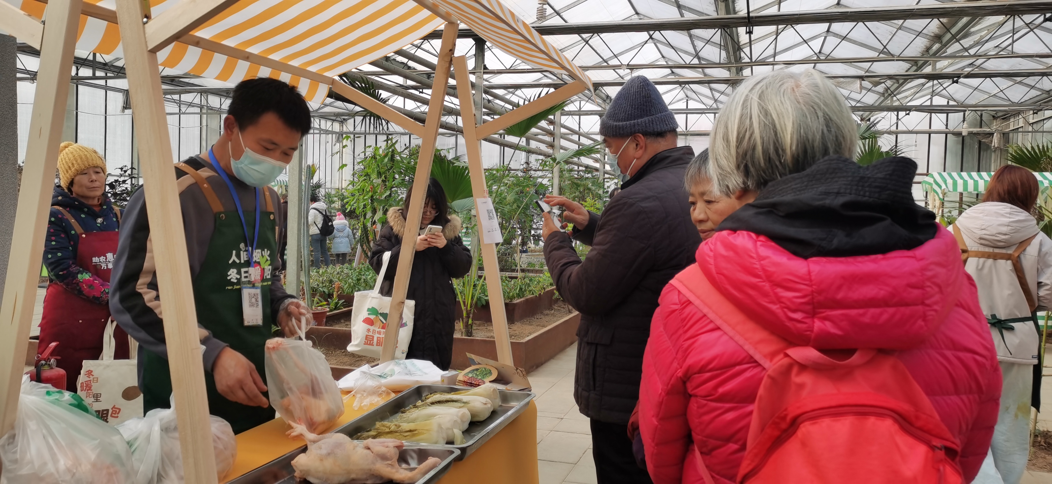 步入集市,温暖的气息和各色果蔬的香气扑面而来。细看各个摊位,苹果、梨、萝卜、白菜、白薯、鸡蛋、杂粮、黄瓜、西红柿、茄子、柿子、蘑菇,每类产品都是顺义人熟悉的本土农副产品。小集市凝聚大力量,顺义公园的游客纷纷来到集市摊前,一边采买着自己需要的农产品,一边与摊主聊聊天唠唠家常,瞬间让公园充满了烟火气和冬日里的温暖。