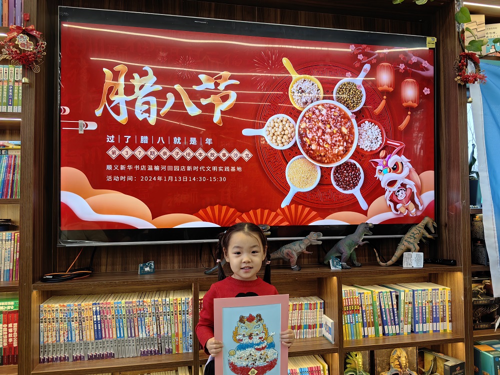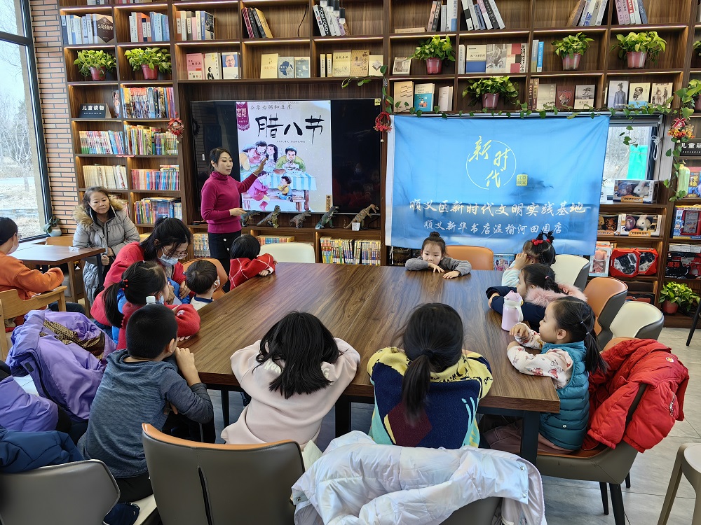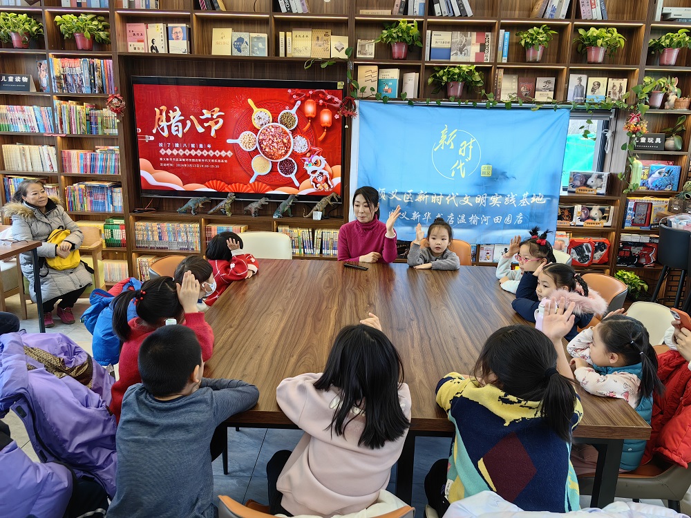 顺义新华书店温榆河田园店新时代文明实践基地开展“传承民俗 浓情腊八”亲子绘本手工活动