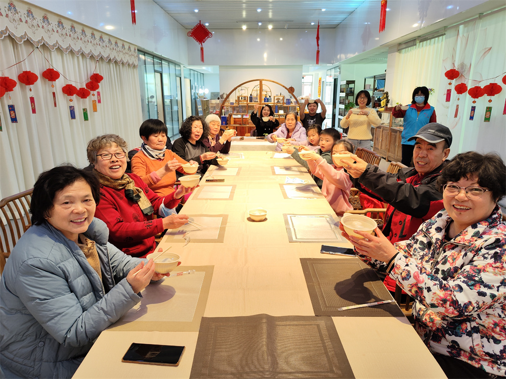 等到热气腾腾的汤圆端上了桌,大家开始品尝着自己亲手包的汤圆。这不仅仅是美食的享受,也寓意着大家新的一年阖家幸福、团团圆圆。