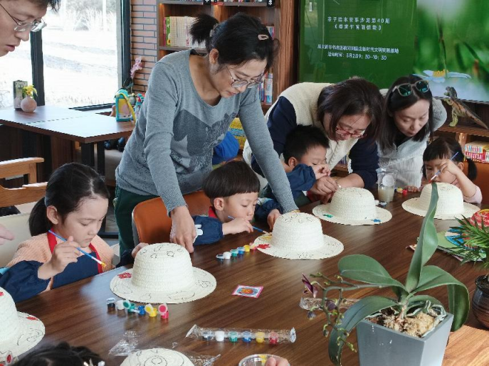 随后,京京老师给大家分发了制作材料,并指导大家一起制作涂鸦草帽。活动室内,家长和孩子们一起发挥想象力、共同创作,孩子们用彩笔开心地在草帽上涂鸦着各种图案,瞬间让草帽生动活泼了起来。经过一番努力,一个个漂亮的涂鸦草帽就做好了。孩子们纷纷戴上亲手绘制的草帽,仿佛感受到了春天田野的美好,心情十分舒畅。