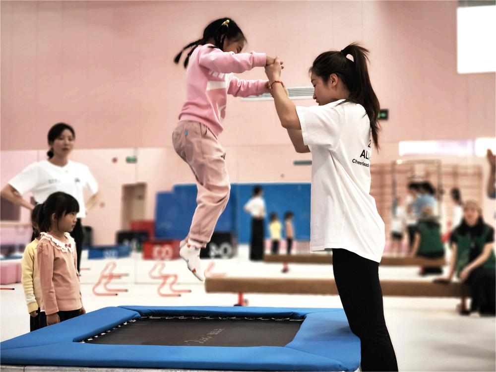 随后,在体能技巧训练体验中,孩子们在独木桥、堆堆木等多样体能教具上锻炼平衡感和灵活性;在啦啦操学习体验中,伴随着轻快的音乐,孩子们认真学习啦啦操,如同春日里的小鸟轻盈跳跃。
