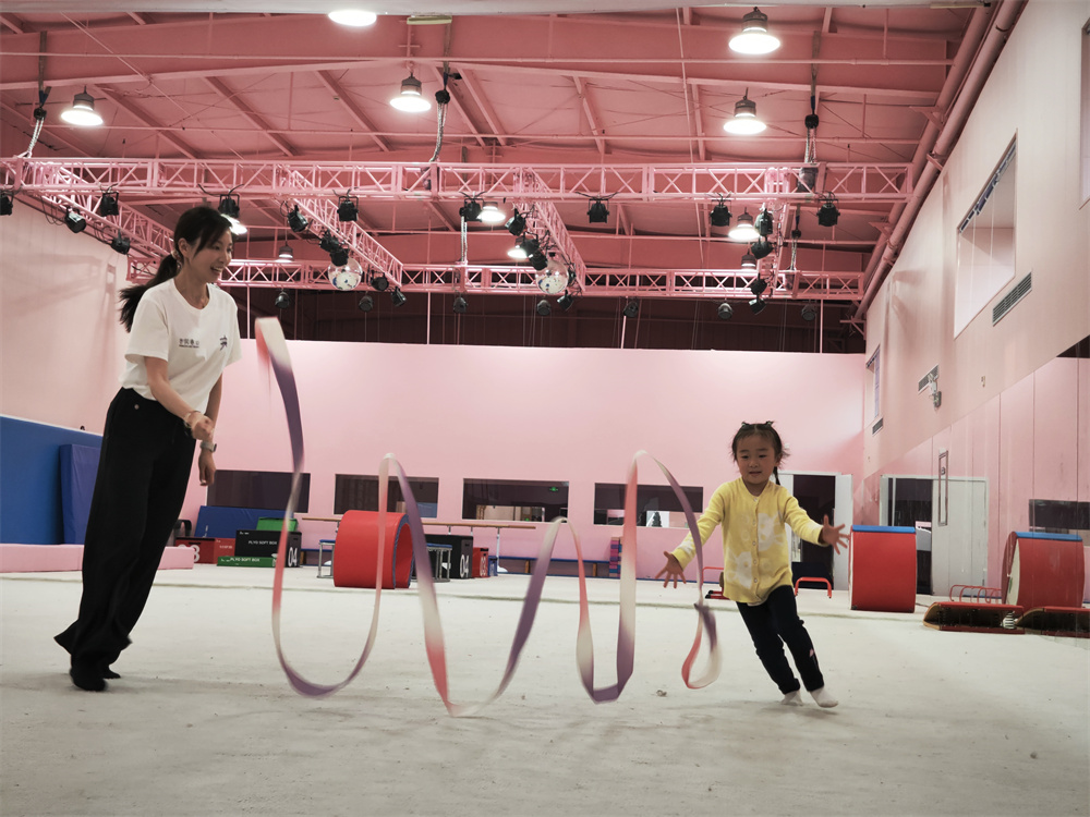 艺术体操可以训练形体,不断提升身体素质和艺术气质。孩子们在老师的指导下认真学习每一个动作,努力做到最好。最后,孩子们追逐着舞动的彩带尽情奔跑,享受着艺术体育的快乐。