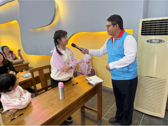 活动中,基地工作人员为孩子们分发了《红色文化研学实践课程学生手册》,随后带大家参观了地道战遗址并亲身体验钻地道。参观结束后,志愿者为大家讲述地道战革命先烈的英勇事迹,带大家学习红色历史,并通过问答互动让孩子们对革命历史有了更深刻的认识,革命先烈的英勇事迹也深深地留在了大家的心中。