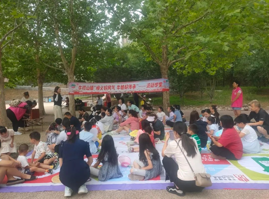 为庆祝中国共产党成立103周年,增进辖区儿童爱党爱国情感,7月1日,牛栏山镇金牛山公园新时代文明实践基地开展了“顺义好风气,牛娃好传承”流动学堂之“童心向党,庆祝七一”活动,近30组家庭参加。