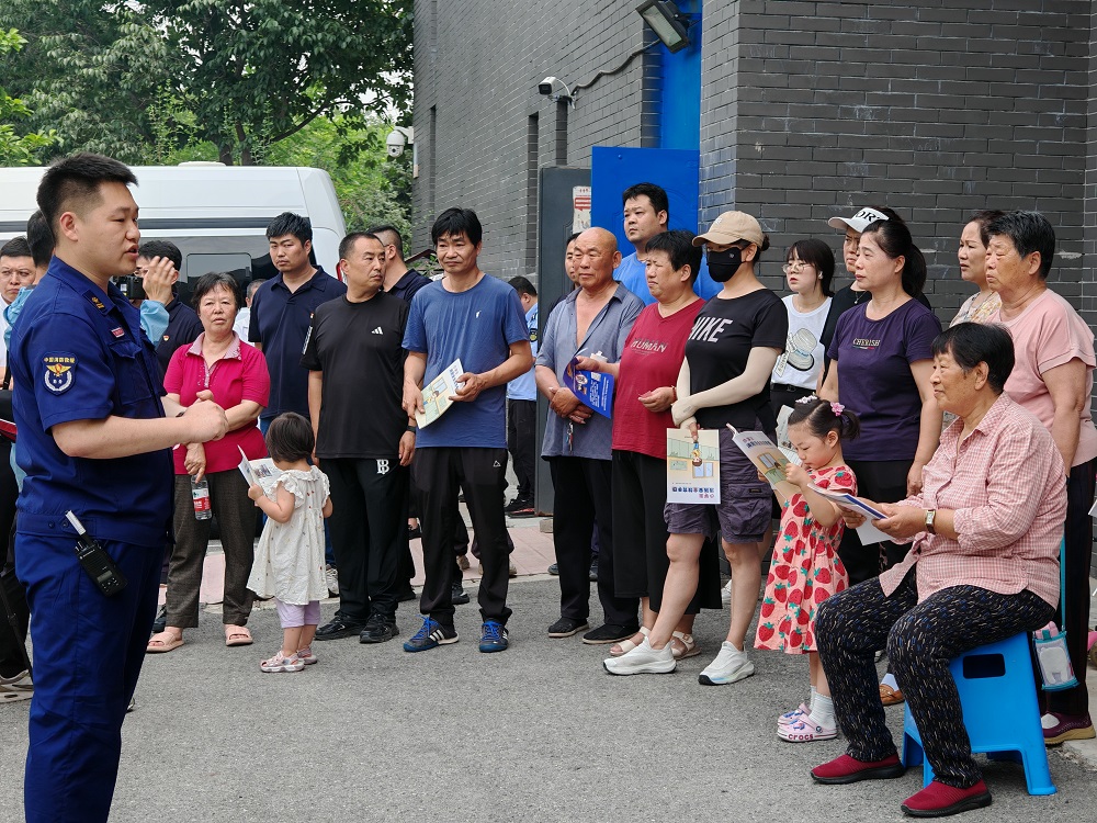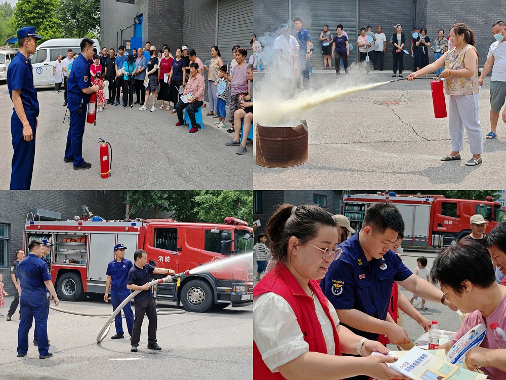 活动最后,指战员指导居民们进行“一警六员”消防基本技能实操练习。“提、拔、握、压,这个灭火器的使用口诀大家一定要记住”,练习中,指战员为大家示范讲解了灭火器、消火栓的使用方法,并为大家发放消防安全宣传手册及海报,同时讲解消防法律法规、火灾预防措施和逃生自救方法等,提醒居民们注意安全用火、用电、用气,增强大家的消防安全意识。