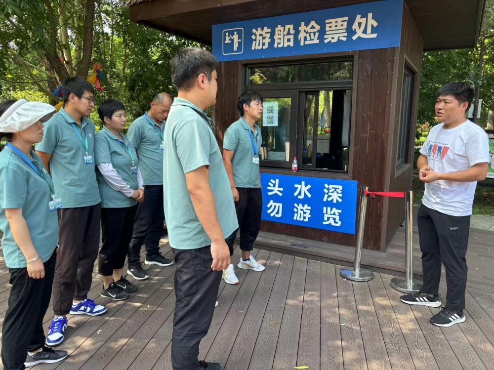 活动中,当“游客溺水”的警报响起,志愿者们迅速行动,有的准确投掷救生圈,有的在岸边准备急救设备,大家分工明确,配合默契,快速进行游客溺水救援练习。在“游船故障”模拟情境中,志愿者们有条不紊地组织游客疏散,锻炼并提升应急指挥和协调能力。此外,专业救生教练为志愿者们进行了详细的理论讲解和救生示范,包括正确的救生姿势、做心肺复苏的注意要点等。整个救生演练过程中,志愿者们认真练习,积极实践,每一个动作都力求做得标准、规范。