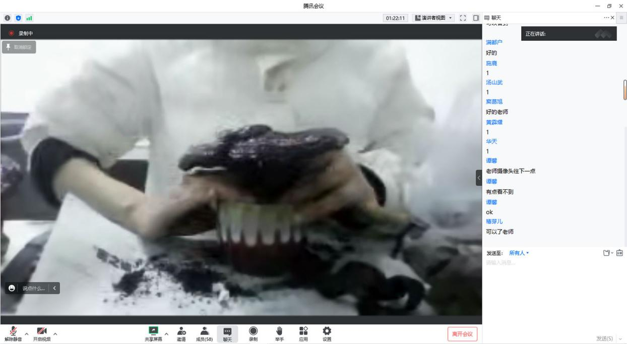 老师为大家讲解了灵芝的种植、管理技术、功效及灵芝盆景的制作方法。随后,进行了线上演示。老师用砂粒拥塞,使灵芝形似生于砂石中,并用铁丝织成网状放入盆里,然后将灵芝柄插入适当的网孔,用砂砾填充,用石膏将灵芝固定于盆中适当位置,再用陪衬晒干的苔藓进行装饰,一盆艺术造型的灵芝盆景就呈现在眼前了。